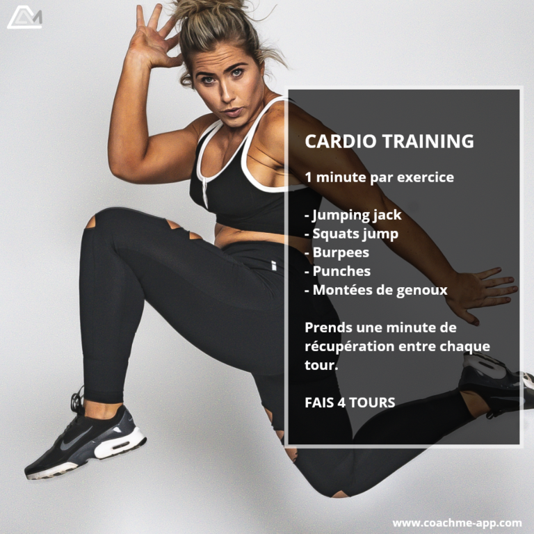 Pour faire travailler ton cardio, n’hésite pas à réaliser ce workout 😉