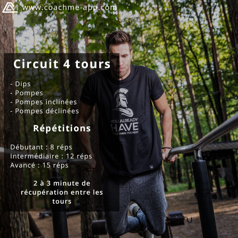 Effectue 4 tours de ce circuit training axés sur tes pecs et fais-les exploser 😉